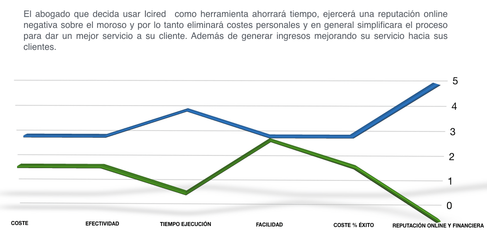 Por consiguiente, ICIRED para los abogados no solamente no se revela como un nuevo elemento competitivo sino que, muy al contrario, ha sido concebido para apoyar, complementar y mejorar el servicio que los abogados prestan a sus clientes en la reclamación del pago de sus deudas. Pero ¿cuáles son las ventajas de icired para abogados?