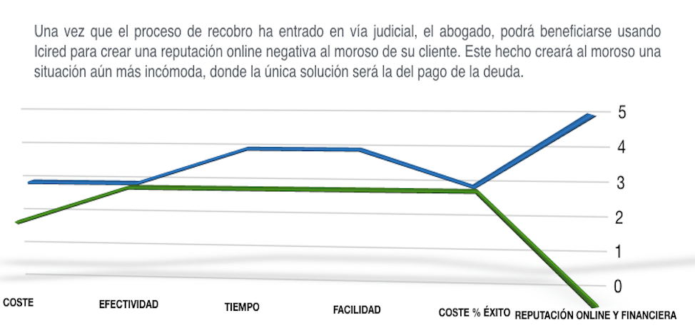 - Los clientes del abogado obtendrán la herramienta más usada por los bancos y grandes compañías para lograr el cobro de sus deudas, y que ahora gracias a ICIRED también está al alcance de la mano de cualquier acreedor.